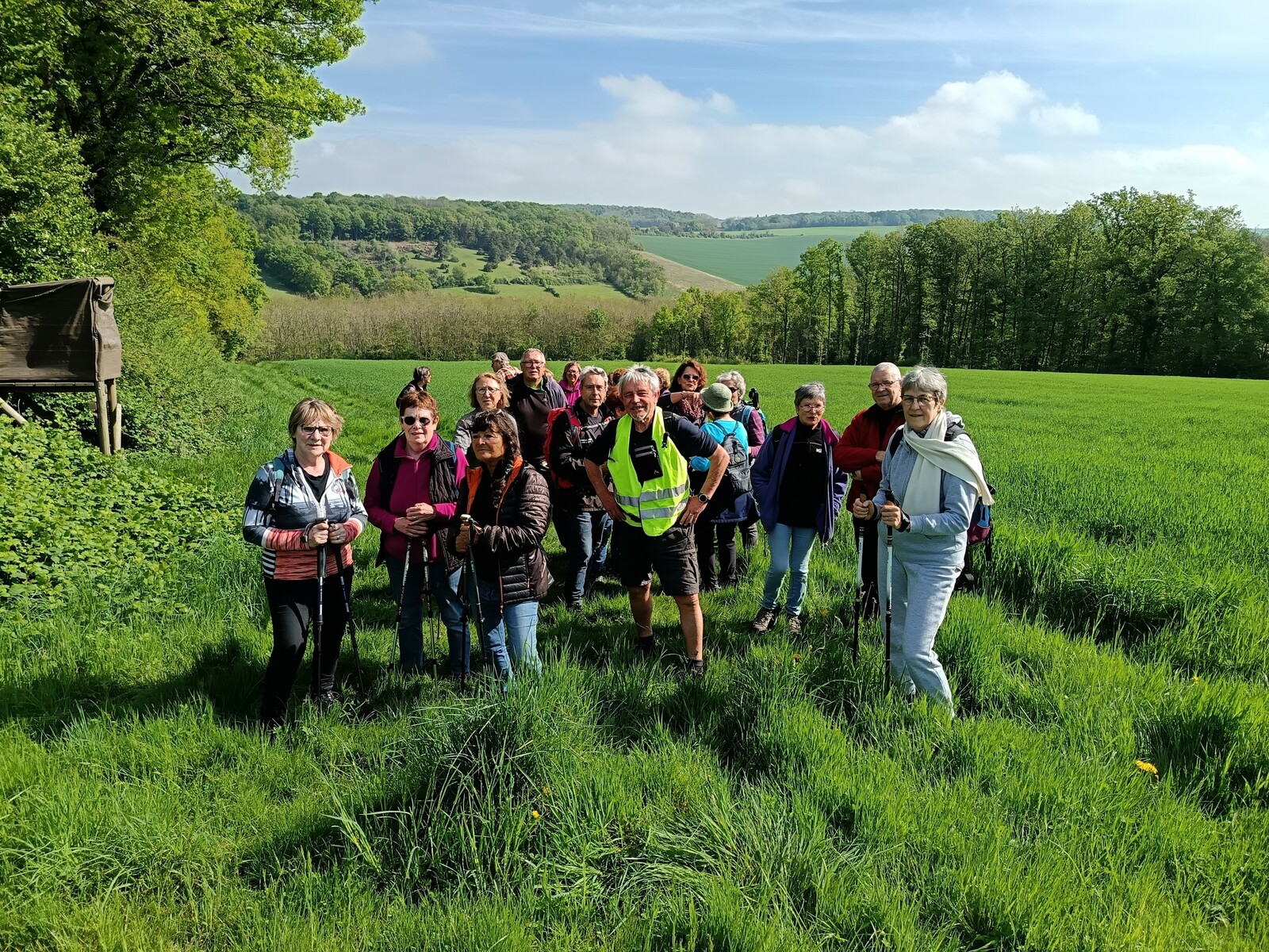 Après une petite confusion de parkings, c'est une bonne vingtaine de marcheurs qui ont pris la direction des Bois de Chapitre et ses magnifiques plates bandes multicolores,Puit Botin,la Houabre,, puis ce fut la redescente sur Véron,par .. à défaut de chemin,la route des Bordes plutôt fréquentée à cette heure de la journée !