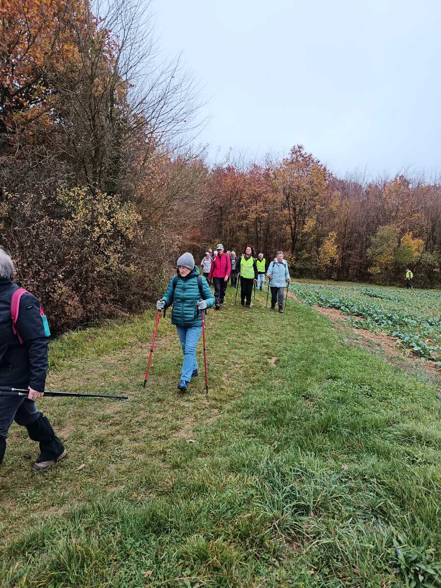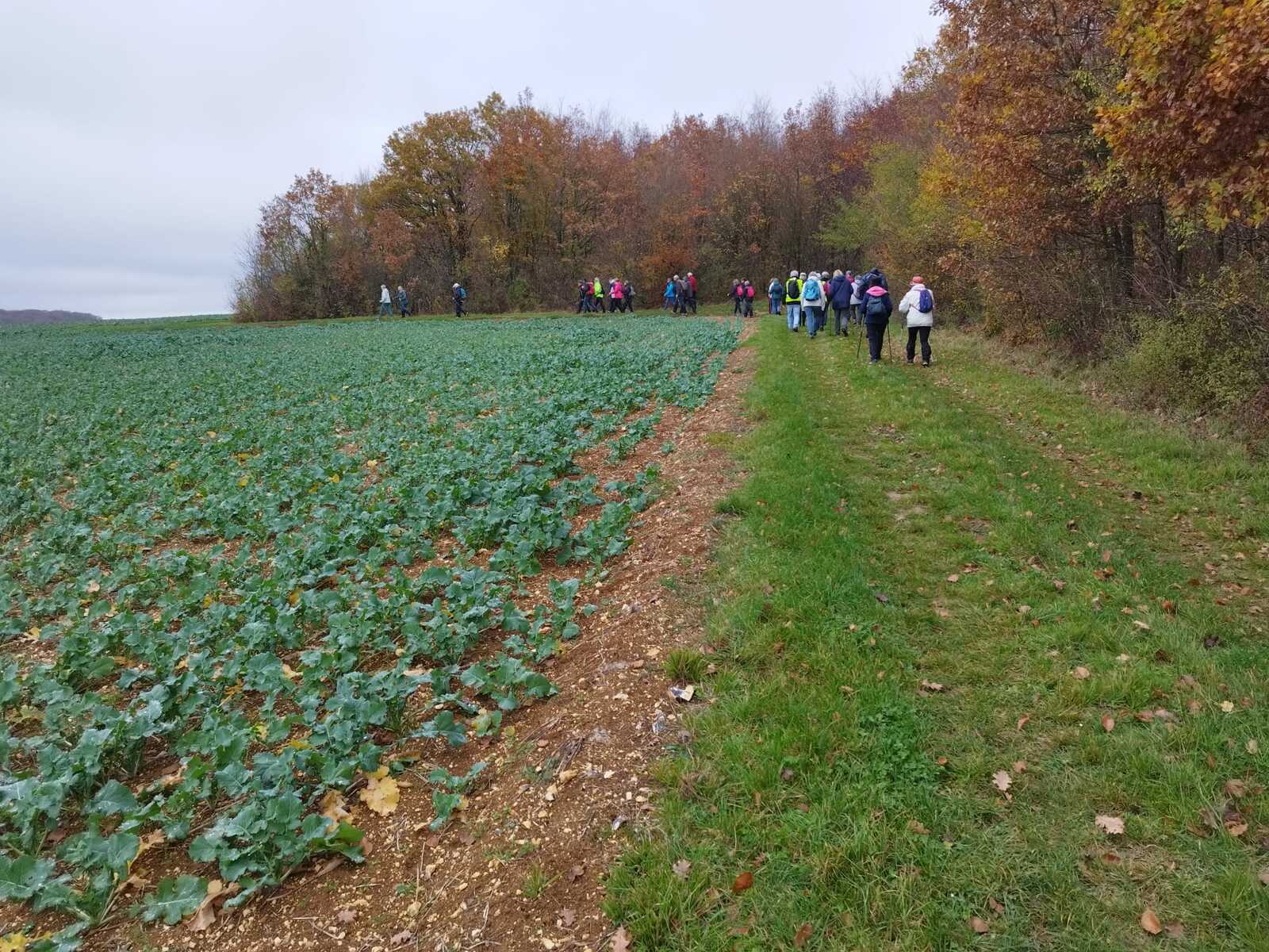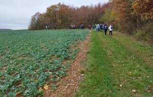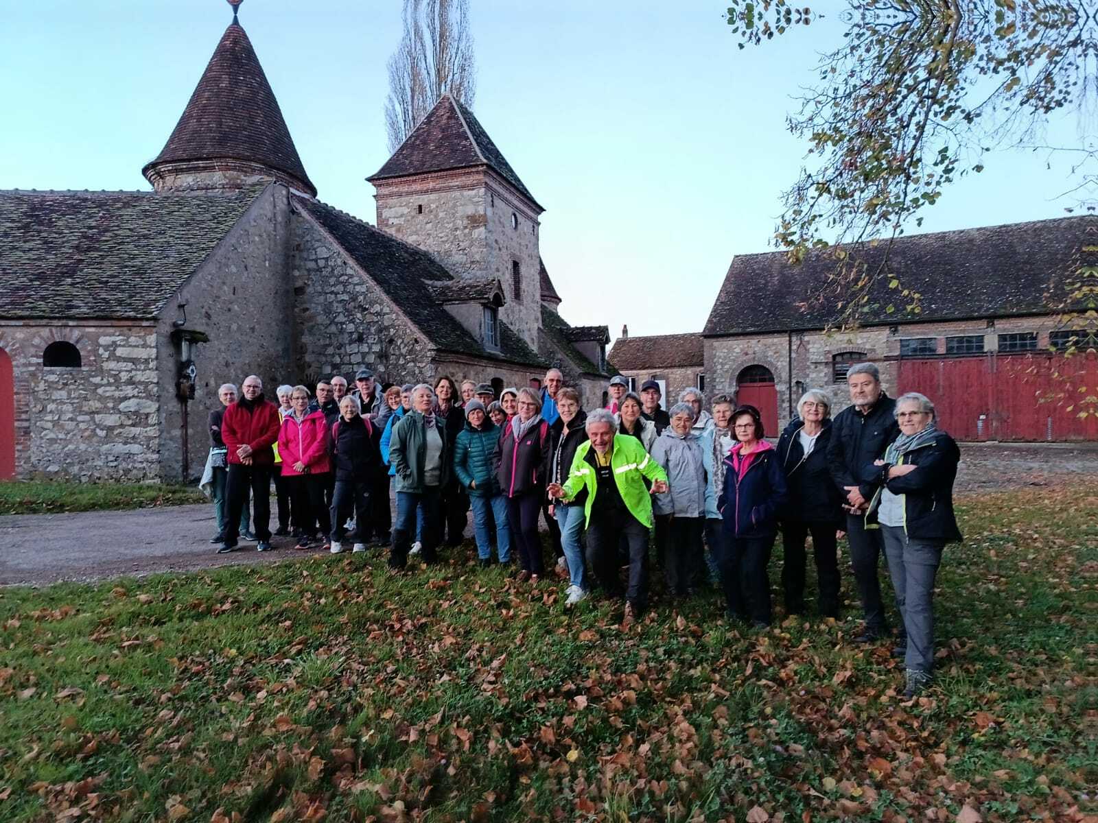 La météo et l'historique du lieu y étant certainement pour quelque chose,nous étions trente trois au départ de la ferme de l'Abbaye.Nos guides du jour,Anna et Barbara,en parfaite connaisseuses des lieux,nous ont dirigés sur La Charmée par un GR2 très agréable,puis redescente dans la vallée par le bois de Toucheboeuf,l'ancienne grange cistercienne du même nom,puis retour sur Vauluisant par le même GR2.Les onze kilomètres de ce beau parcours ayant laissé quelques traces,les gateaux et friandises furent appréciés de tous!
